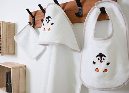 Nos articles font fureur en magasin auprès des jeunes mamans, des femmes enceintes et des mamies, tatas, marraines et cie. C'est normal, car nos ensembles bébé sont vraiment chouettes ! Nous sommes très fiers de pouvoir proposer à nos clients et clientes de si beaux cadeau de naissance et nous en créons régulièrement. Vous trouverez si vous le souhaitez, d'autres articles pour bébé, comme notamment du linge de toilette pour enfant avec de jolis motifs colorés.