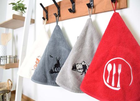 Description: Essuie-main petits coeurs que vous pouvez assortir avec les torchons petits coeurs. Essuie-main éponge Jacquard de trés haute qualité. Doux et absorbants, ces articles sont assortis à nos torchons lin/coton.