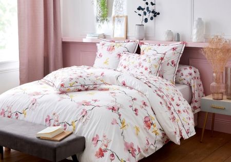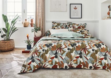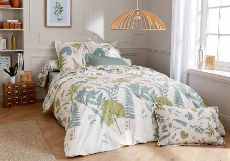Housse de couette Flora A partir de Découvrez le confort hôtelier à domicile avec la percale de coton, l'incontournable du linge de lit haut de gamme. Sa supériorité repose sur un tissage serré et régulier de 80fils/cm² garantissant une résistance exceptionnelle face au temps et aux lavages répétés.
