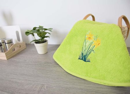 Description: Cet essuie-mains brodé représente de belle jonquille. Absorbants et résistants, notre gamme d'essuie mains nid d'abeille saura répondre à vos exigences. Les broderies réalisées dans nos ateliers à Gérardmer vous garantissent la qualité et le savoir faire de notre région.