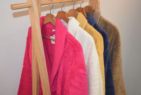 Pour le Micro-Coton : Cette matière délicate demande un peu plus de douceur. Privilégiez un cycle modéré et évitez de mélanger votre peignoir avec des vêtements munis de crochets ou de zips qui pourraient tirer les fils. Comme pour l'éponge, le sèche-linge (cycle délicat) aidera à restaurer la douceur veloutée du micro-coton.
